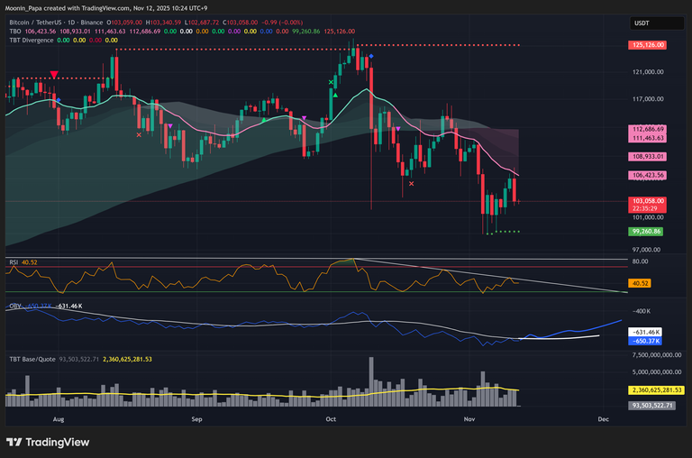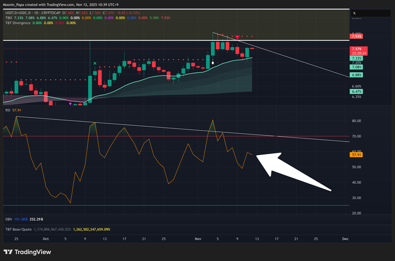 Stablecoin dominance rebounded 3.20% after touching the daily TBO Fast line, a classic TBO Springboard Bounce. Yet daily RSI did not confirm strength, indicating the likelihood of a second TBT Bearish Divergence soon. Bitcoin dominance (BTC.D) nudged higher on BTC’s pullback but remains within the daily TBO Cloud, suggesting further decline ahead that would support an altcoin rally. OTHERS.D sits in bullish consolidation within its TBO Cloud, with a short‐term target of 8.33% at TBO resistance. TOTAL E100.D is printing its third TBO Close Short, reinforcing the view that a broader market peak may occur by mid‐December, followed by a bear market—albeit only after one final altcoin surge.