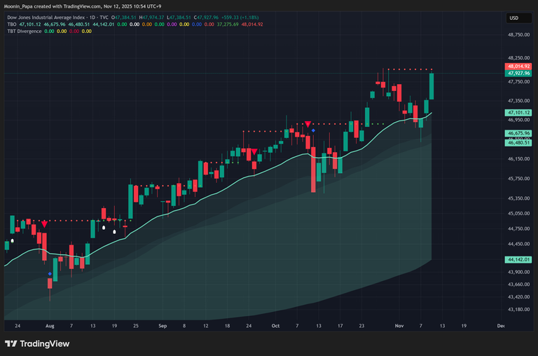Gold has recovered above its daily TBO Cloud but shows early signs of waning momentum. Silver, however, continues its advance toward TBO resistance above $51, reflecting strong risk appetite among metals investors. This behavior parallels the bullish sentiment in crypto markets and supports a continued upward trajectory across asset classes over the next five to six weeks.
