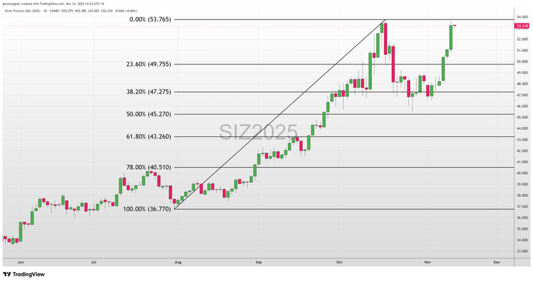 Gold futures have climbed nearly $200 over the past three trading sessions, representing approximately a 5% advance that has decisively reclaimed the psychologically significant $4,200 level. This move alone would be noteworthy, but it pales in comparison to silver's spectacular performance. Silver futures have emerged as the clear outperformer across the entire precious metals complex, gaining more than $5—a remarkable 10.58% advance—over the same period. This surge has propelled silver back toward all-time highs and, crucially, has etched a textbook technical formation on the charts that seasoned traders recognize as highly significant.