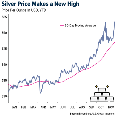 - Gold surged as U.S. lawmakers moved closer to ending the longest shutdown in American history but slipped later in the week as doubts about a potential rate cut at the next Federal Reserve meeting grew. Ending the shutdown would provide investors with greater clarity on key economic indicators, such as jobs and inflation, according to Bloomberg.