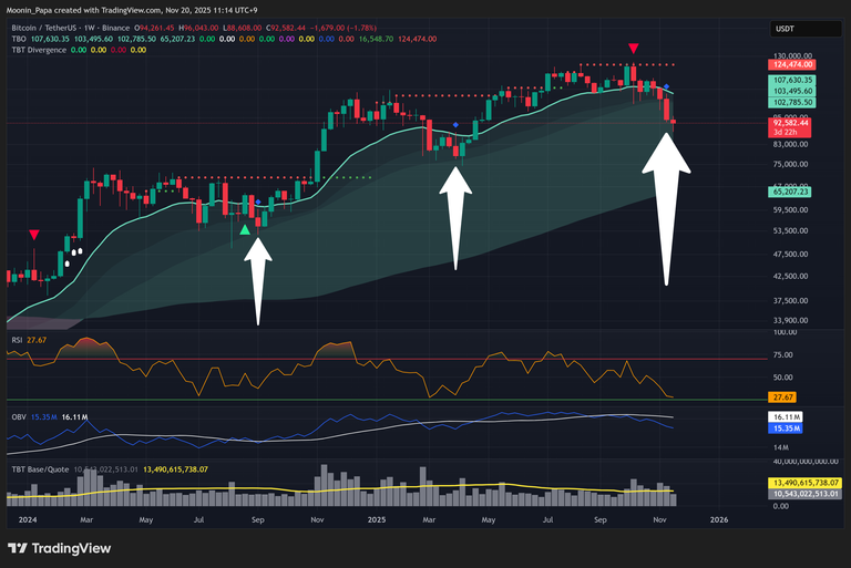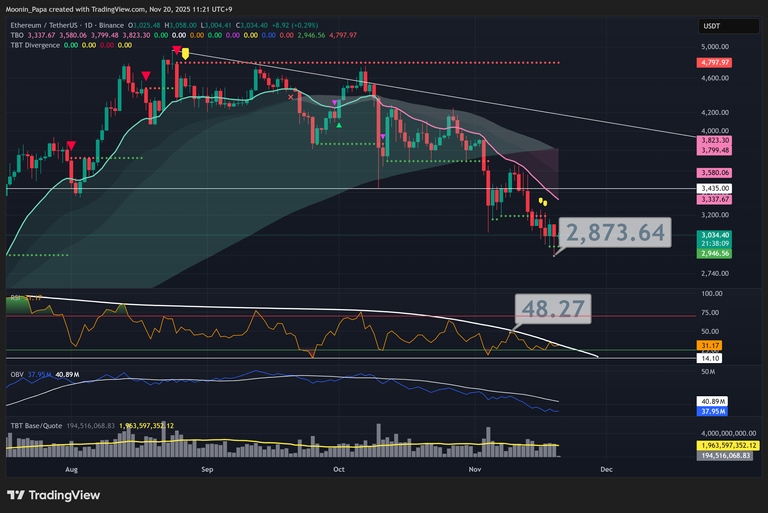 Bitcoin printed a lower low near $88,000, with the daily RSI hovering around the oversold boundary at 25. Both the TBO (Trend Bar Oscillator) and On-Balance Volume (OBV) signal strong bearish momentum, reinforced by rising volume as price declines. While a bounce to the daily TBO Fast line remains possible, any relief rally should be treated as a potential bull trap given the prevailing macro bearish trend.