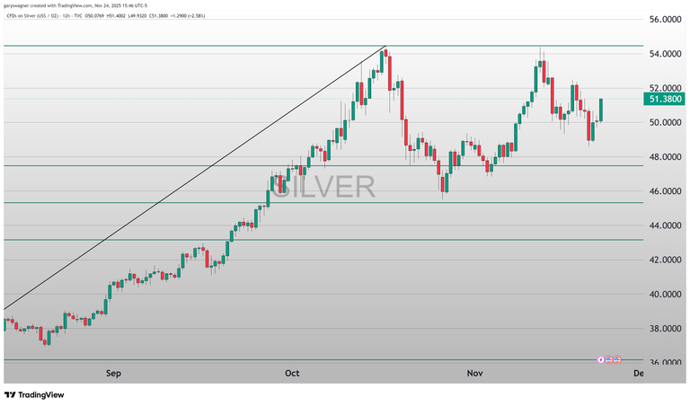 In Monday trading, gold futures settled at $4,120 per ounce, representing a gain of $58, or 1.42%, for the session. Silver also posted strong gains, not only reclaiming the $50 threshold but advancing beyond the $51 level to trade at $51.05 after rising $1.15, or 2.32%.
