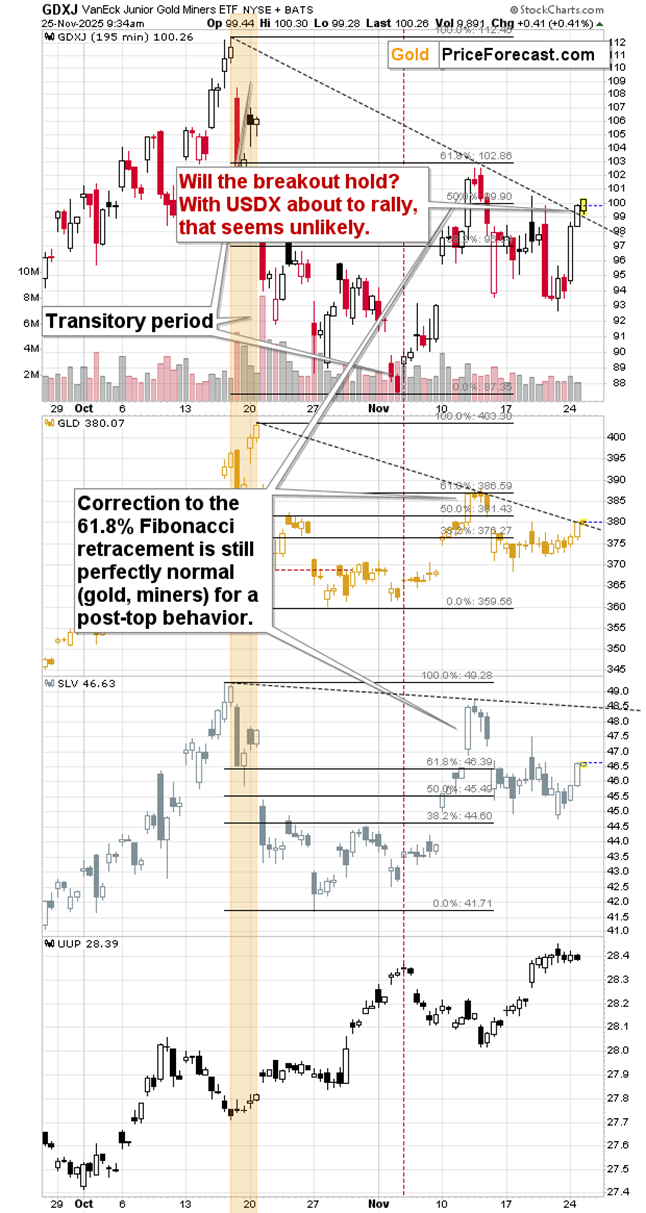 Given where the USD Index is, it seems only a matter of time – very little time – before the declines in the precious metals resume.