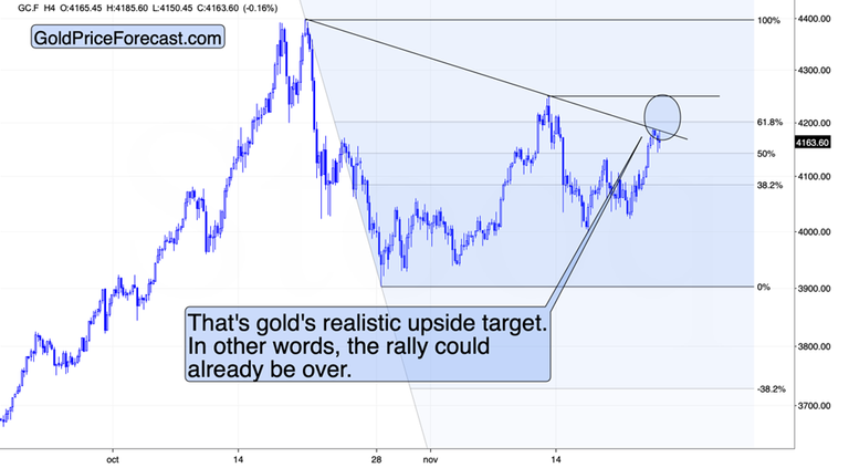 Consequently, I’d view the move to $4,250 or so in gold futures as the possible, but not the most likely outcome. Also, while I’m forecasting silver at much higher prices in the following years, I don’t think we’ll get there without a medium-term decline first.