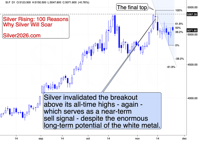 Yes, even despite the 100 reasons for silver to soar in the long run, it can still slide in the medium term, especially if we get serious trouble on the stock market. And given that declining bitcoin is likely heralding trouble in the AI sector, that’s exactly what we might get.