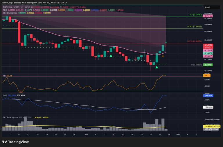BNB is holding above overhead resistance, targeting the daily TBO Cloud at $912 and the 1.272 Fib extension at $992. SOL is near its TBO Fast line and printing a TBT bullish divergence, yet a BTC correction at its Fast line could deepen altcoin losses. Many altcoins—including MNT and other low-cap tokens—are showing early TBT bullish divergences reminiscent of July’s reversal signals, though confirmation via rising volume, OBV, and RSI is needed. FARTCOIN’s recent TBO close-short adds another data point for monitoring broader alt-season dynamics.