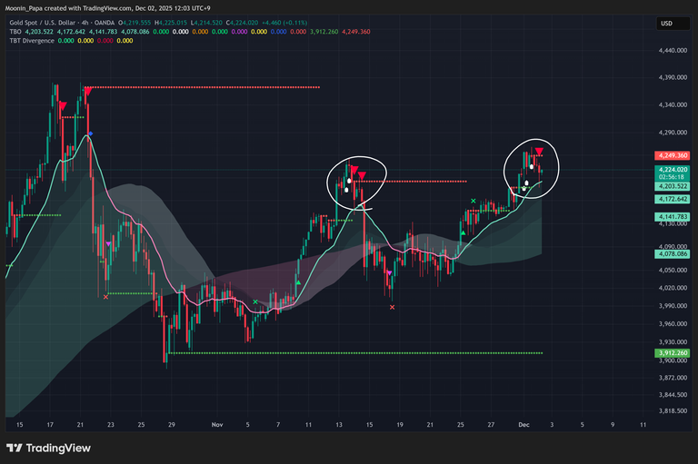 Gold’s four-hour chart shows TBO Breakouts paired with TBT Bearish Divergence, highlighting a likely short-term reversal. Silver’s recent rising-wedge breakout occurred after the rally, suggesting an exhaustion move rather than a sustained uptrend. Traders should watch for failure at key resistance and validate any breakout with volume and momentum confirmation.