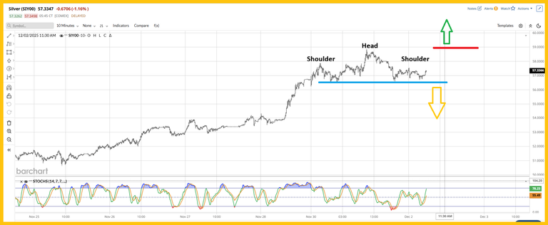 16. Click to enlarge this short-term silver chart. A move above $59 that is accompanied with gold moving above $4265 would be another green shoot. That would destroy the nasty H&S top for silver that has come into play.
