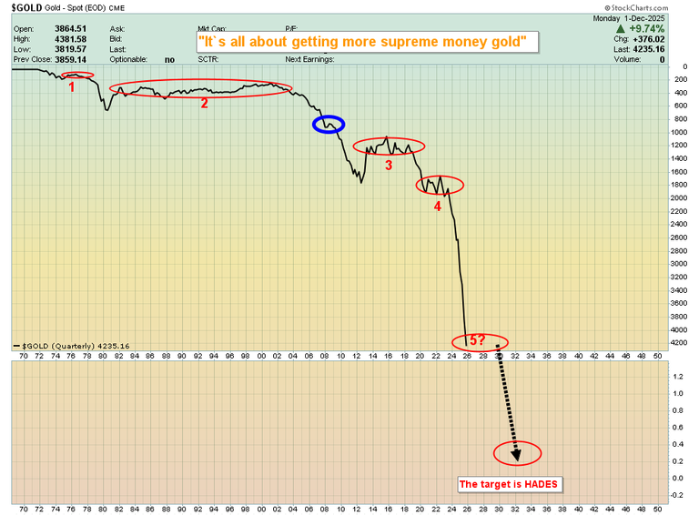 23. Most senior miners sport costs in the $1500/oz range… while gold trades at about $4200! The undervaluation is obvious, as is the potential upside indicated by the massive inverse H&S pattern and Elliott wave counts on this GDX versus gold chart.24. In a nutshell, it’s not a gold bull market. It’s a bull era that is only in its infancy and likely lasts for 200 years. With their allocation set near-perfectly in sync with their character, the world’s most savvy gold and silver bugs are set for decades of gold stock adventure… and profit!