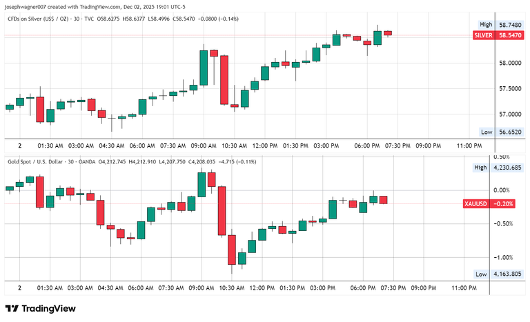 This shift is underscored by their respective daily performances and highlights the changing dynamics within the precious metals complex. Silver advanced $0.73, or 1.26%, posting solid gains even as gold posted a fractional loss. While the magnitude of gold's decline was minimal, the directional divergence between the two metals is significant from both a technical and fundamental perspective. Silver has now recorded substantial gains across four consecutive sessions, repeatedly establishing new record highs and demonstrating exceptional strength that has caught many market participants by surprise.