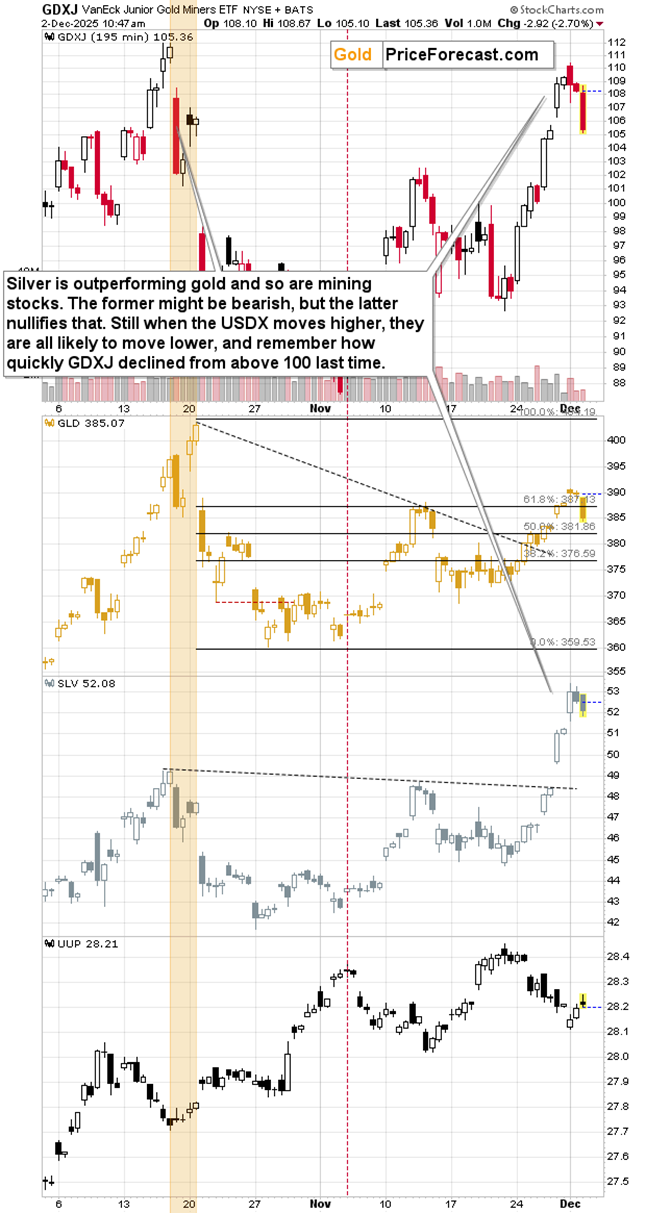In yesterday’s premium analysis, I argued that silver might have decoupled from gold and miners. Today’s action doesn’t oppose it.
