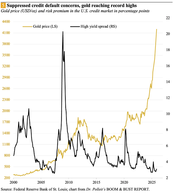 Credit default concerns in the markets have certainly also played an important role in the rise of the gold price. However — and this is important to understand — credit default fears have been receding since the great crisis of 2008/2009 was overcome, and the risk premium in the gold price has therefore probably been relatively subdued or even declining.