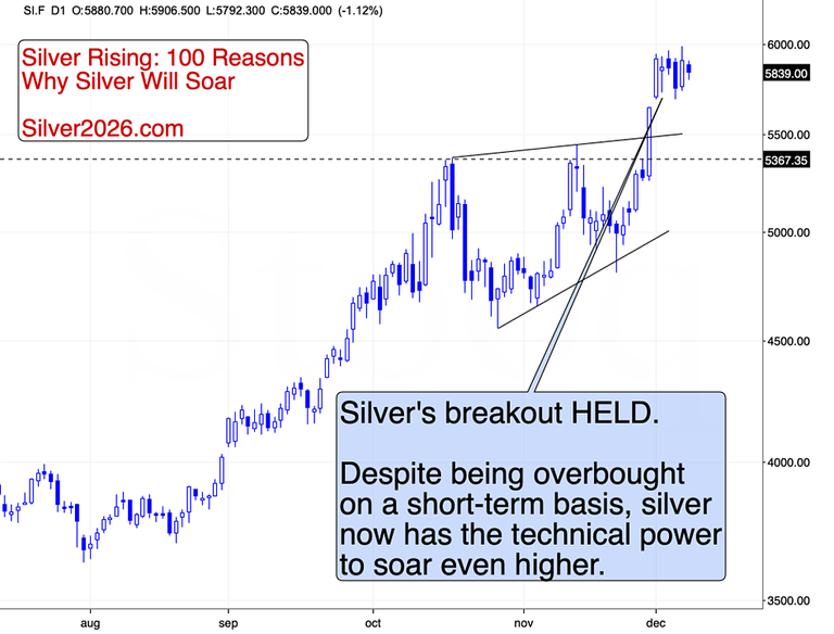 Technically, it looks like a flag pattern, but we’ll know for sure when silver breaks above it (and the $60 level).