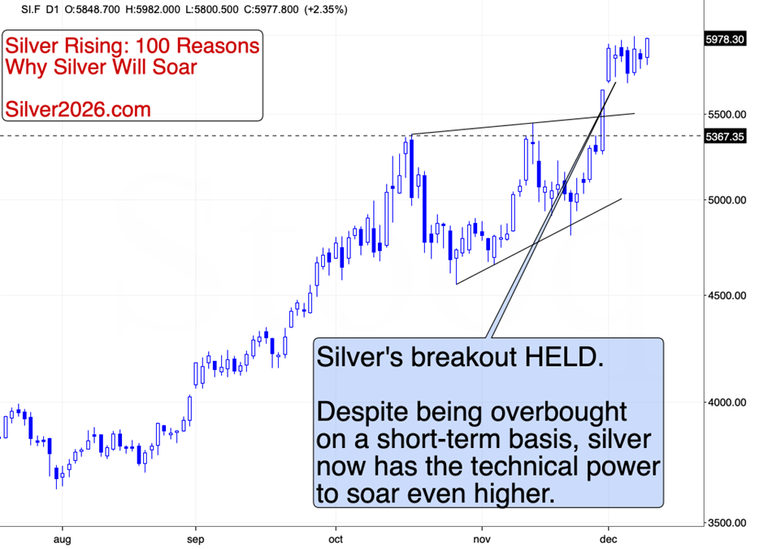 Silver’s strength here is truly exceptional. Dollar down or dollar up – the white metal not only broke to new highs, but is refusing to decline. Instead, it’s pushing further.
