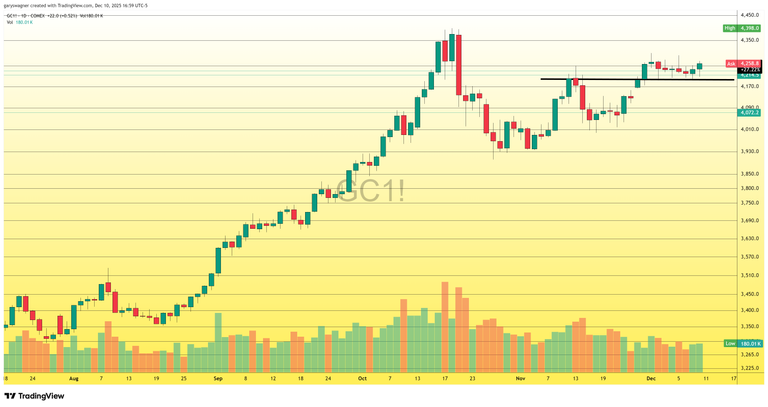 (Kitco Commentary) - Gold futures reversed earlier losses following the Federal Reserve's 25-basis-point rate cut announced at 2:00 PM ET. The yellow metal surged $35 in the hour after the decision, reaching an intraday high of $4,268. Although prices retreated from that peak, gold continued trading firmly above $4,250, last seen at $4,257—up $20.40 or 0.49% on the day.