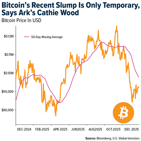 - Ark Invest’s Cathie Wood said Bitcoin’s recent slump is just temporary “wall-of-worry” behavior, arguing that institutional adoption will smooth out its boom-bust cycles, while Ark continues expanding its crypto exposure and remains bullish on both Bitcoin and AI.