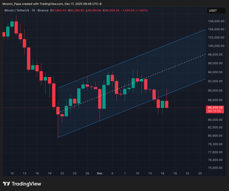 Bitcoin attempted a recovery earlier in the session as price briefly revisited previously lost support, now acting as resistance in a developing bear flag formation. The daily Traders’ Battle Oscillator (TBO) Fast line was tagged, and price pierced the resistance fan before retreating to the TBO Support level near $86,000. A close below this level would increase the likelihood of a drop toward $75,000.