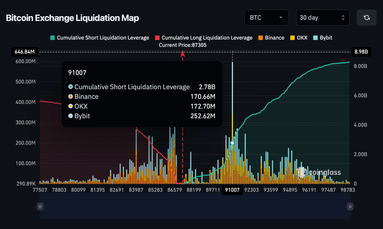 Key resistance lies at the $91,000 sell wall, backed by $2.78 billion in short liquidation risk around $91,007 and maximum pain near $91,116. A push through this zone could drive BTC toward $100,000, though participants should view any sustained gains as a potential bull trap. Overhead resistance at approximately $92,000 remains untested.