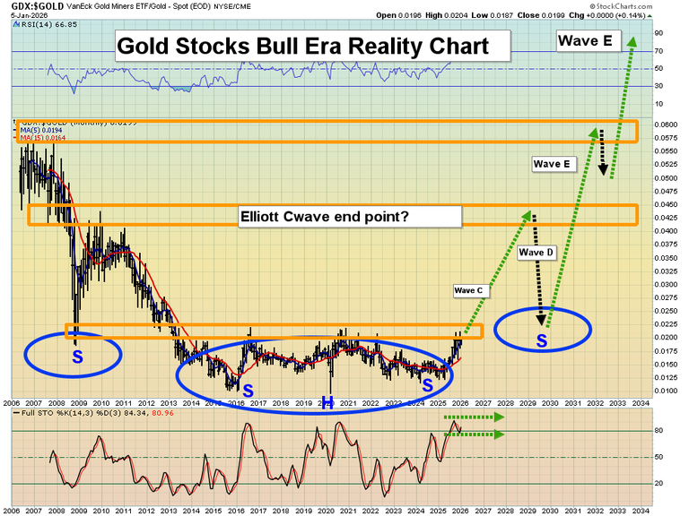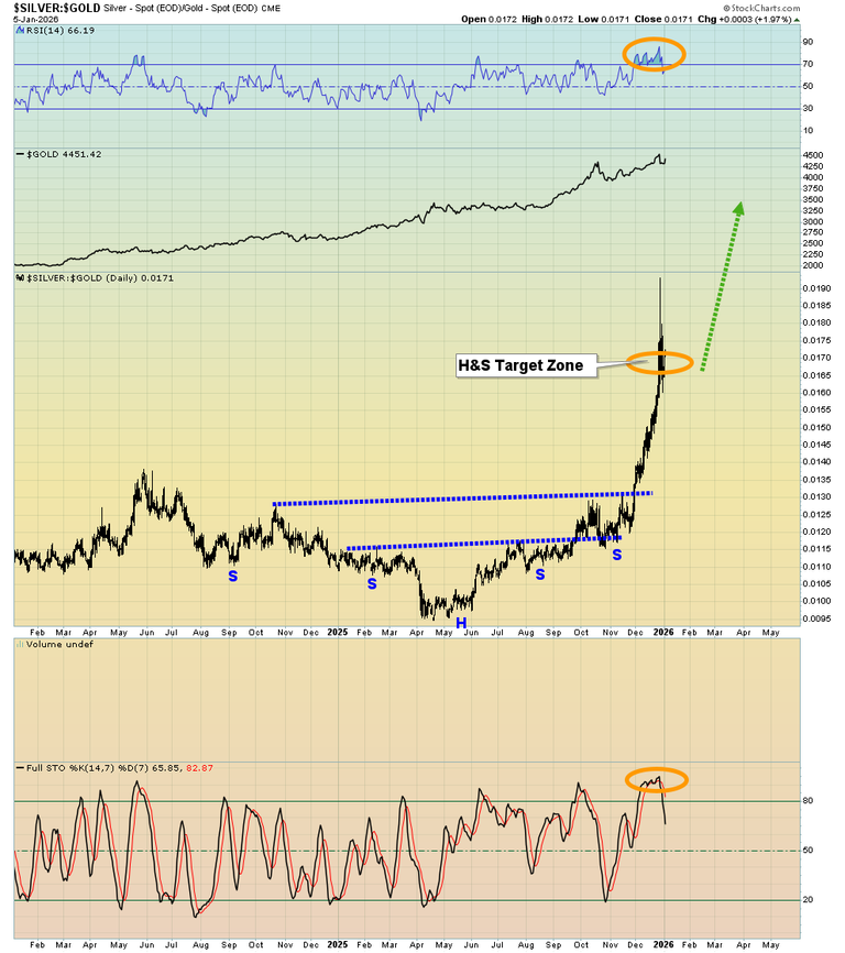 23. Click to enlarge this “mouthwatering” GDX versus gold chart. I urged investors to watch for a Stochastics (14,3,3 series) flatline event. Now it’s here and a surge over the neckline of the massive inverse H&S pattern looks imminent.