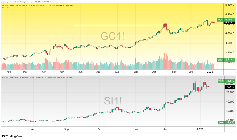 Neither metal shows signs of exhausting its momentum at present, despite the recent consolidation. Gold continues to benefit from its role as a monetary asset and inflation hedge, while silver's dual nature as both a precious and industrial metal provides multiple demand drivers. However, the risk-reward profile differs substantially between the two, with silver offering higher potential returns but also greater downside volatility.