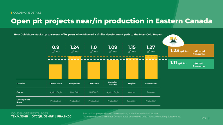 Goldshore Resources has the vision to turn Moss into a top 10 Canadian-producing gold mine and is one of the few remaining major Canadian gold deposits positioned for development in this cycle.